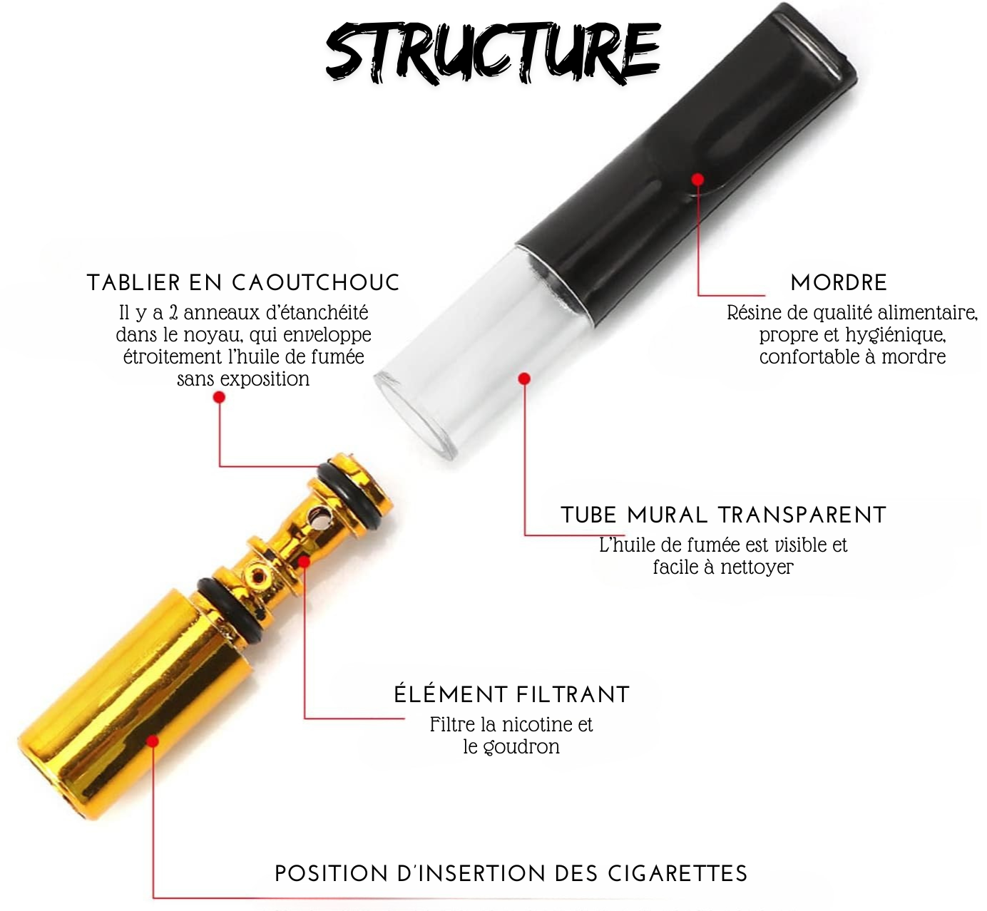 Le filtre à goudron est un accessoire en plastique ABS que l'on place au bout de sa cigarette. Il sert à réduire l'inhalation de la nicotine et du goudron qui sont deux substances très dangereuses pour la santé. Lors de l'inhalation, il capte la fumée et filtre les particules toxiques avant qu'elles n'atteignent vos poumons. Ainsi, vous n'inhalerez plus toutes les toxines contenues dans la fumée.